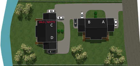 Ytterområde vägar och gångar grusbelagda. Gräsmattor insådda.
